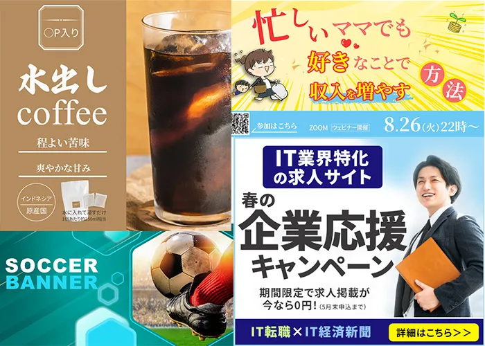バナー・サムネイル・ECサイト画像など、お客様の興味や関心を引き出し、クリックというアクションを起こしてもらうための大切なツール。